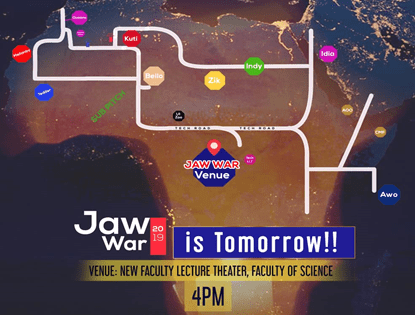 The 2019 edition of the largest public speaking event in Sub-Sahara Africa, known as Jaw War, began on Saturday, 9th November, 2019 at the New Lecture Theatre, Faculty of Science, University of Ibadan.