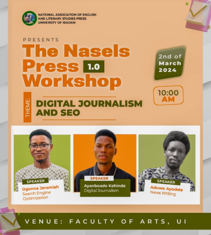 The National Association of Students of English and Literary Studies Press (NASELS Press) will hold its maiden workshop for the session on Digital Journalism, Search Engine Optimisation (SEO), and news writing.